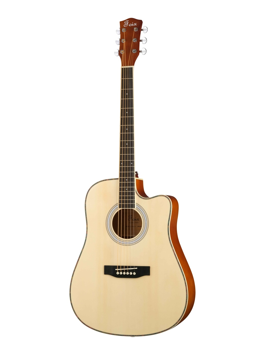 Foix FFG-ED15-N Акустическая гитара. Корпус: дредноут 41", с вырезом. Верхняя дека: ель. Задняя дека и обечайка: липа. Отделка: матовая. Цвет: натуральный.