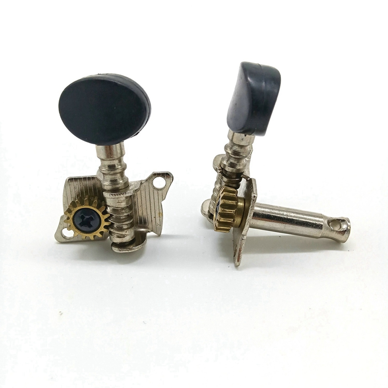 Колковая механика для укулеле. Одиночные, 2 левых + 2 правых. Тип: открытый. Материал: металл, никелированные. Ручки: пластик АБС, цвет: черный.