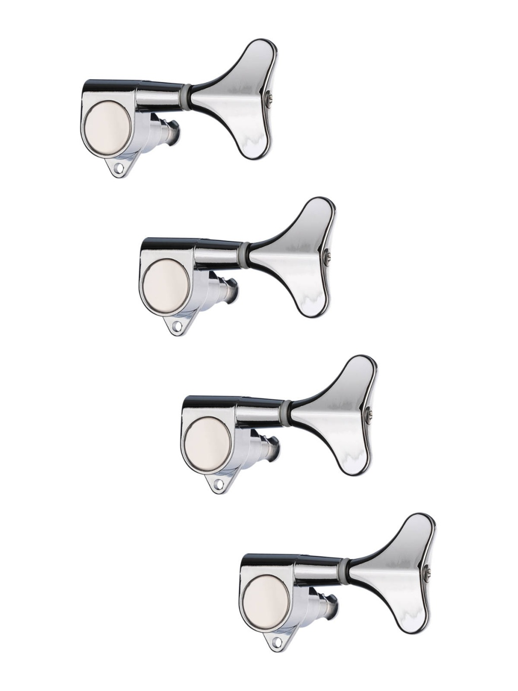 Metallor MHB-02-CR-4L Колки для бас-гитары. Тип: 4 в линию. Ручки (лепестки): 33,6мм. Диаметр посадочного отверстия: 13,5мм. Диаметр вала: 8,5мм. Цвет: хром.