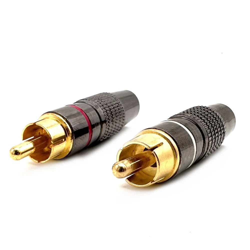 RCA тюльпан металл,коннектор под пайку, черный, красная/белая полоса, комплект (пара)