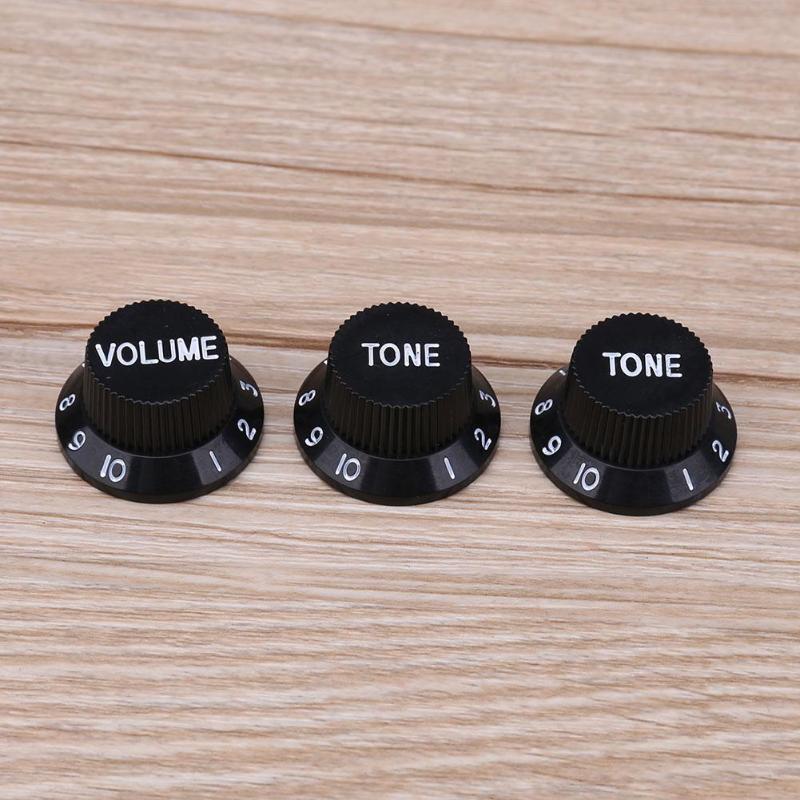 Ручка потенциометра, пластик, цвет: черный, цифры белые. Надпись на крышке: Volume, Tone.