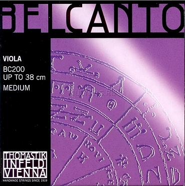 Thomastik Belcanto BC200 струны альтовые, среднее натяжение. А/Ля: стальной сердечник. D/Ре: витой сердечник, алюминиевая оплетка. G/Соль, C/До: витой сердечник, серебряная оплетка.