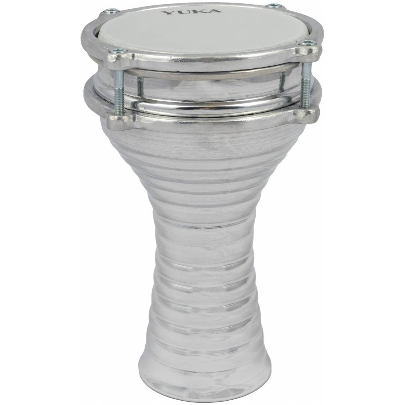 YUKA DRBTL5-10M - Дарбука турецкая. Диаметр: 5" (13см). Высота: 10" (24см). Корпус: алюминий, гофрированный. Мембрана: пластик. Цвет: металлик.