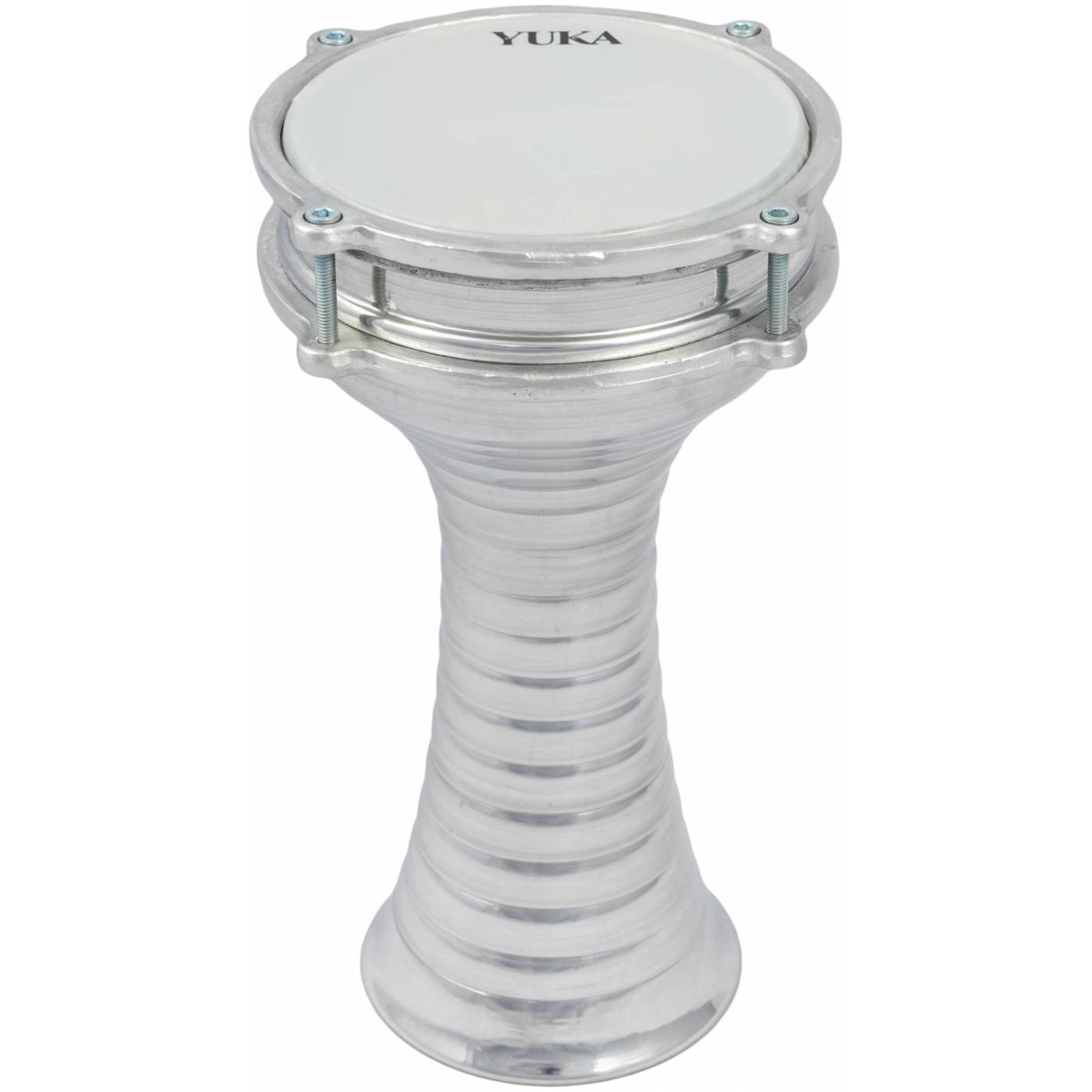 YUKA DRBTL6-12M - Дарбука турецкая. Диаметр: 6" (15см) Высота: 12" (30см). Корпус: алюминий, гофрированный. Мембрана: пластик. Цвет: металлик.