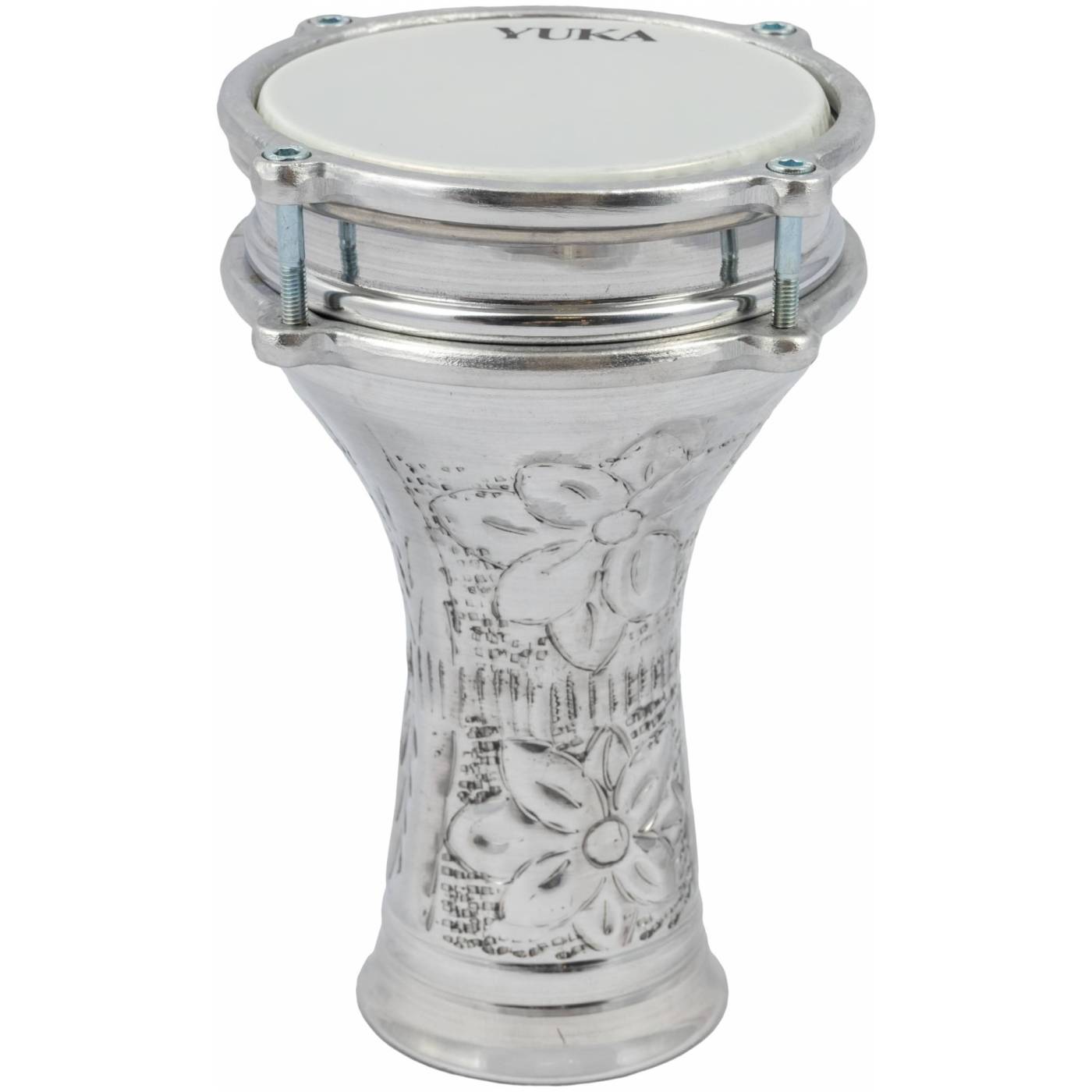 YUKA YDRM5-10HHM - Дарбука турецкая. Корпус: Алюминий Диаметр: 5. Высота: 10'. Цвет: Хром. Отделка: Ручная ковка.